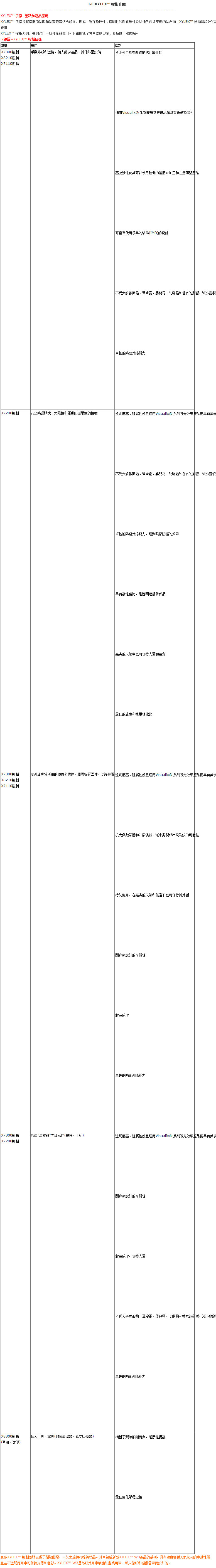 GE XYLEX 樹脂介紹