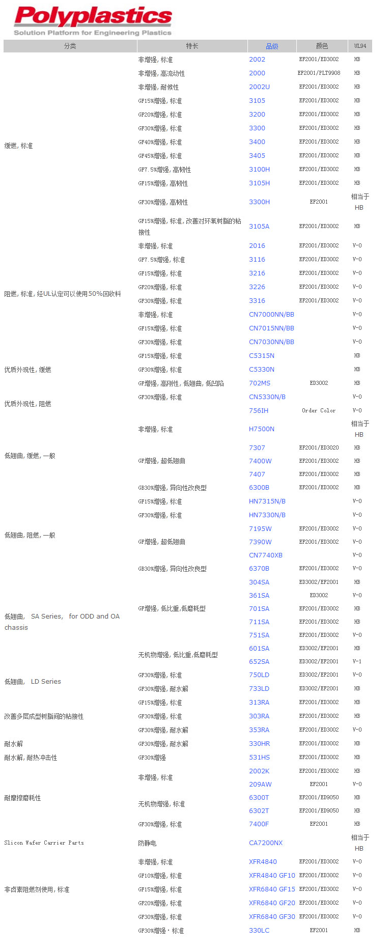 日本寶理DURANEX(PBT) 塑料產(chǎn)品分類與性能