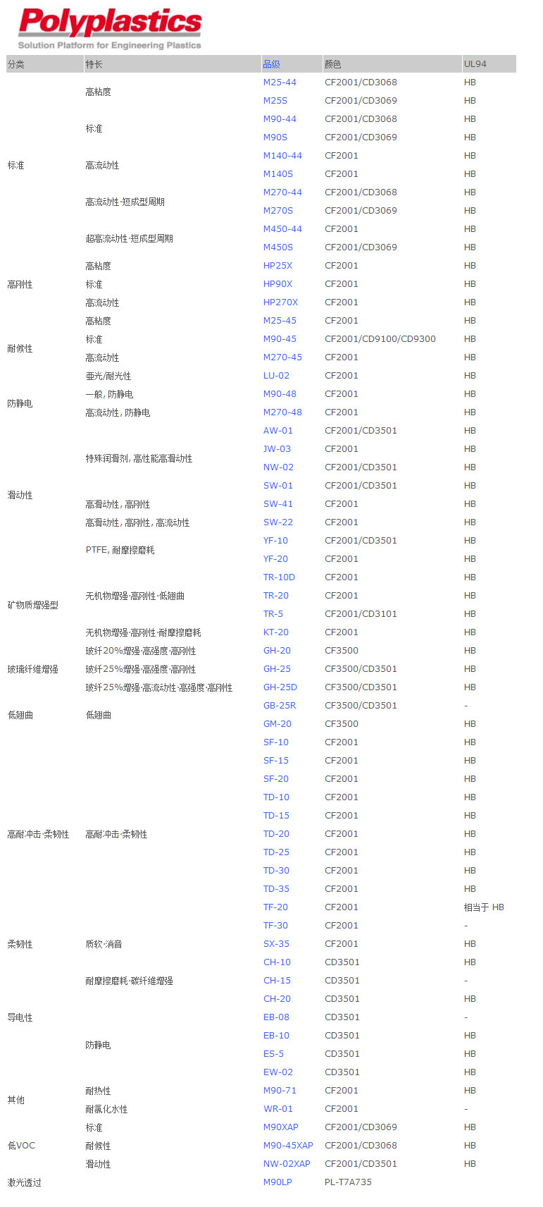 日本寶理奪鋼DURACON(POM) 樹脂性能特長與分類